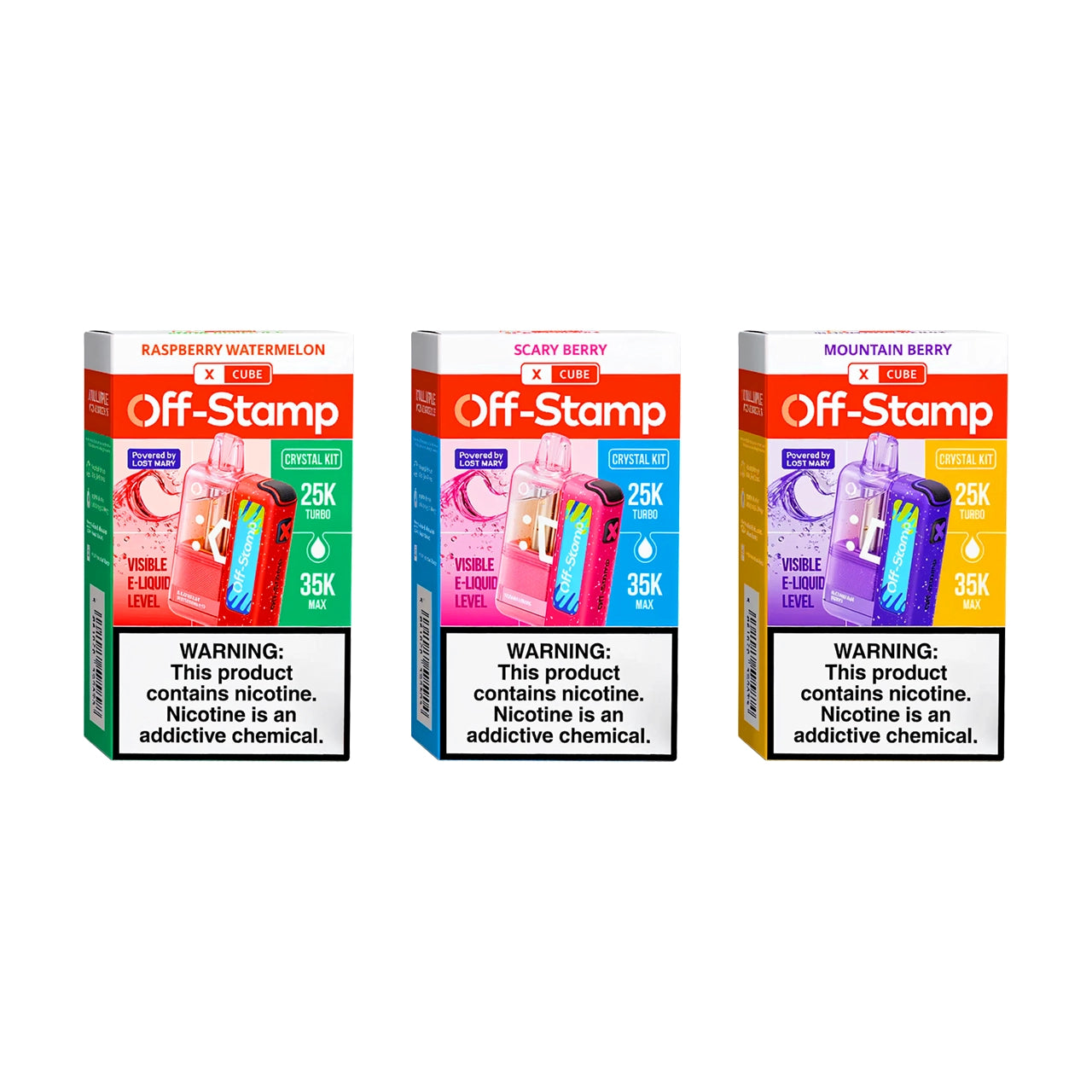 Unlock the realm of possibilities with the Off-Stamp X Cube Crystal Cube 35K Full Kit, redefining the standards of premium vaping. This sophisticated package includes one 17mL, 5% nicotine pod and the reusable Smart Charging Device for a seamless plug-and-play adventure. With up to 35,000 puffs and adjustable modes—Light, Normal, and Turbo—you have full control over your experience. The striking crystal-clear aesthetics, intuitive HD display, and lightning-fast USB-C charging make this an advanced choice for adult vapers seeking extraordinary flavor, style, and customization—all neatly packed in a sleek cube.